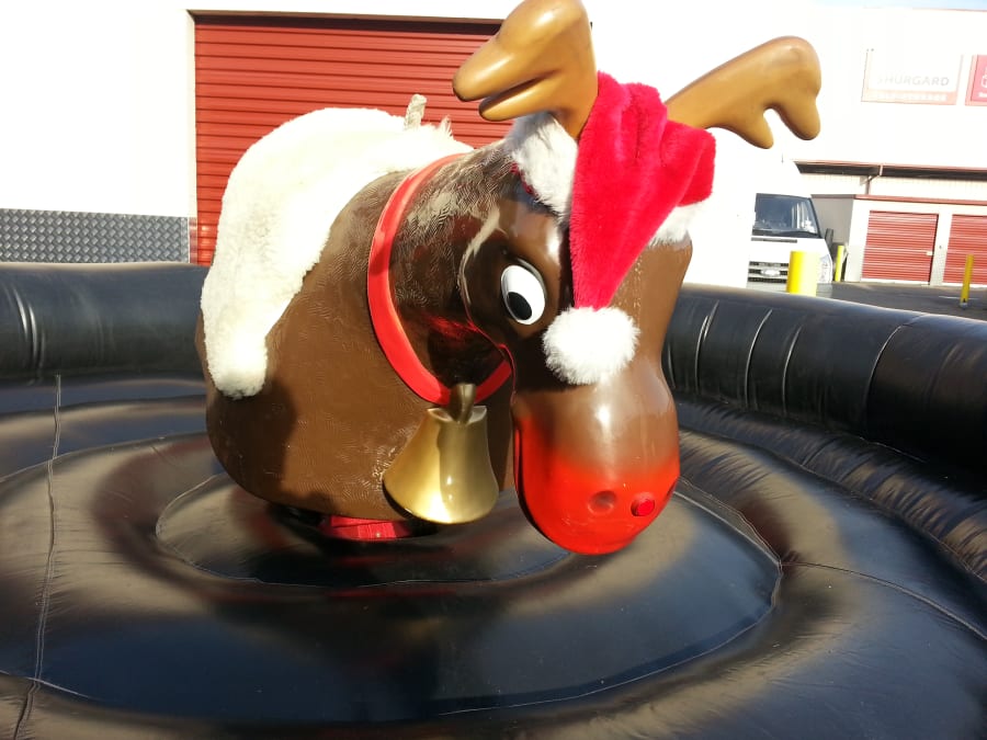 Rodeo Reindeer meets industry safety standards. The ride is operated by a trained technician. Routine safety checks are performed before each session. Capacity is one rider at a time. Recommended age 10+ with adult supervision for younger guests.