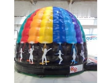 Boogie the night away in our bouncy disco dome! This is the original and best disco dome featuring a disco light and Bluetooth Speaker system. Play your music from your phone or tablet and dance to the flashing lights.