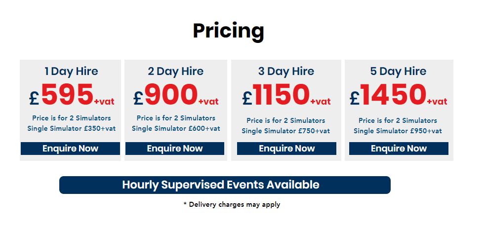Great for any Corporate event, Exhibition stands, Promotions or just some great fun racing with colleagues.