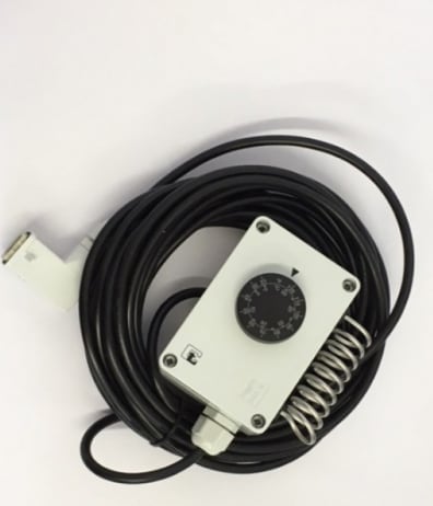 A precision thermostat controller with attached cable, designed to regulate temperature automatically for heating systems. Simple to install and easy to use — ideal for Marquee heaters. Durable build ensures reliable performance and safer energy use in all seasons.