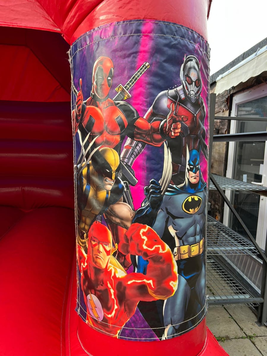 Unleash superhero excitement with our Marvel and DC Hero Bouncy Castle - an inflatable adventure where young champions bounce into the epic world of their favorite superheroes!