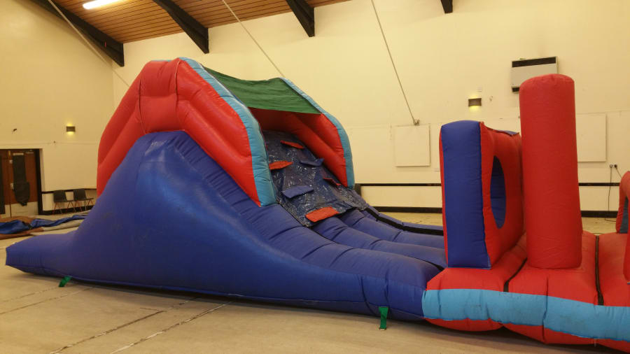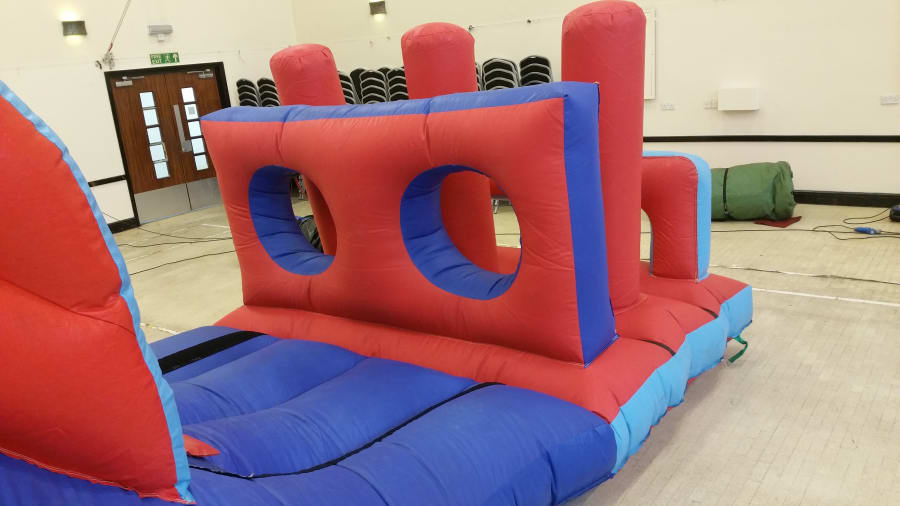 A Bish Bash Pillar Obstacle course ideal for any party or event! Jump on and bash your way through the pillars, then climb up and over the 6 foot slide. An exhilerating fun obstacle course guaranteed to entertain the kids! A very popular obstacle course ideal for indoors or outdoors.