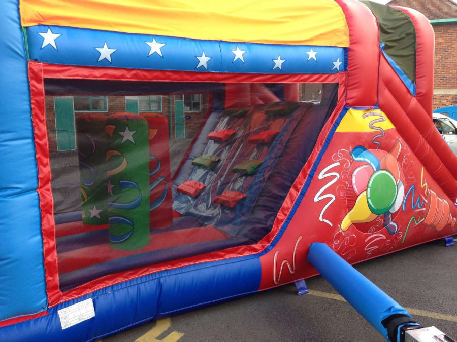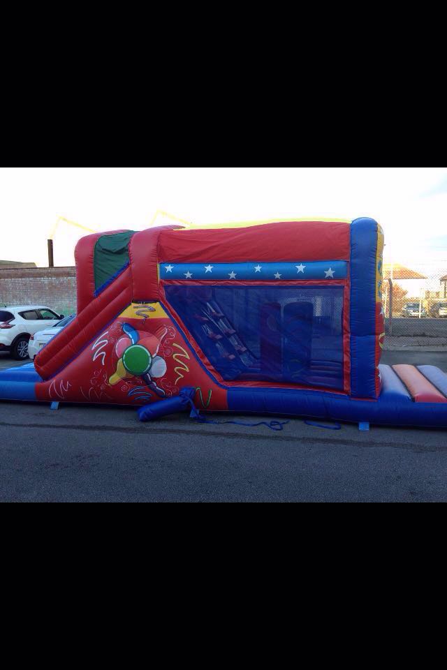 A great Fun Run with Bish Bash pillars followed by an up and over slide! Great for the mini gladiators in your house! Ideal for a any party with your friends. This castle is ideal for indoor and outdoor use!